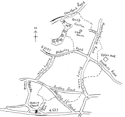 Upton Hall, Prestbury Golf Club and Sandy Lane – Starting from St Thomas' Church G.R. 881 736